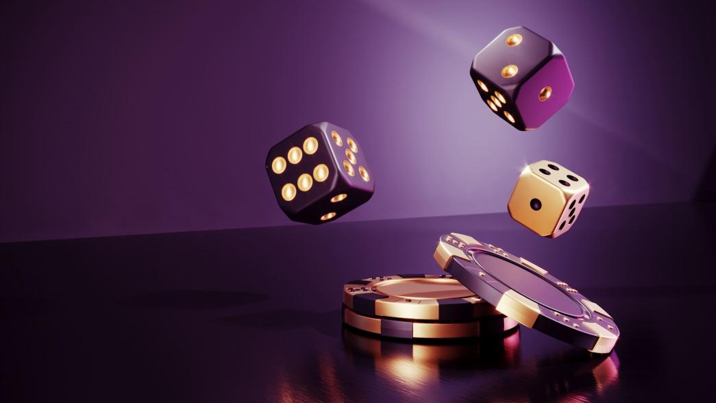 發光骰子與賭場籌碼,展示骰寶遊戲的氛圍。
