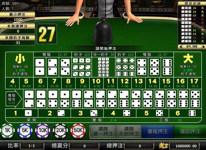 骰寶的歷史可以追溯到古代中國,作為一種深具娛樂性與策略性的賭博遊戲,隨著時間的推移,這款遊戲逐漸在亞洲其他地區流行開來,並最終進入西方市場,成為國際賭場中常見的遊戲。骰寶的基本玩法是,玩家對三顆骰子的點數總和進行下注,並根據賭場的賠率規則來決定獲勝。由於每局結果是由三顆骰子的點數組合隨機決定,骰寶提供了極高的變數與風險,增添了遊戲的刺激感。